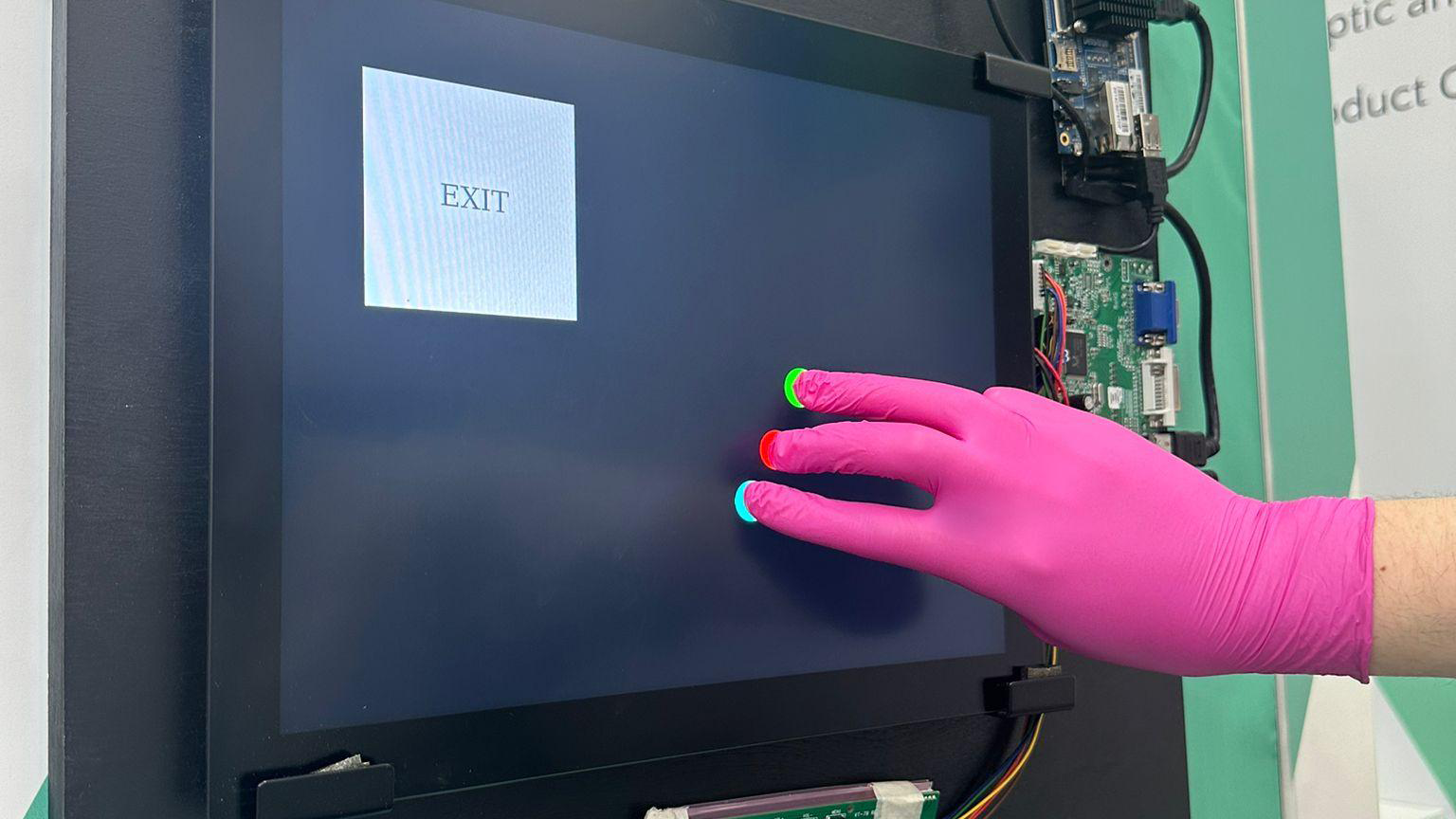 Densitron の 15 インチ TFT ディスプレイのマルチグローブ タッチ センシング