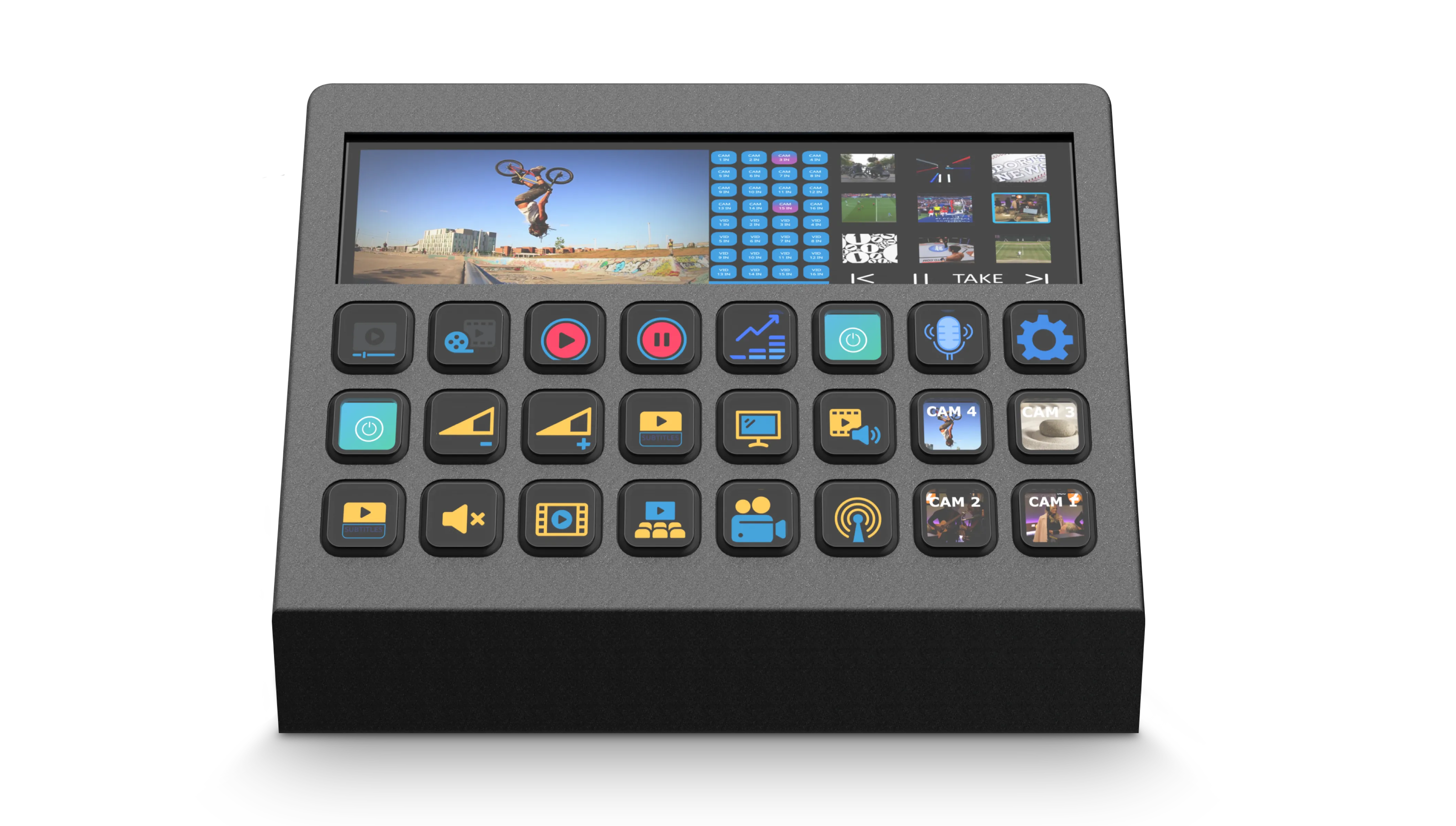 ProDeck の二重目的ボタンはコントロールとして機能するだけでなく、リアルタイムのビデオプレビューも提供し、アプリを正確に識別して簡単に切り替えることができます。