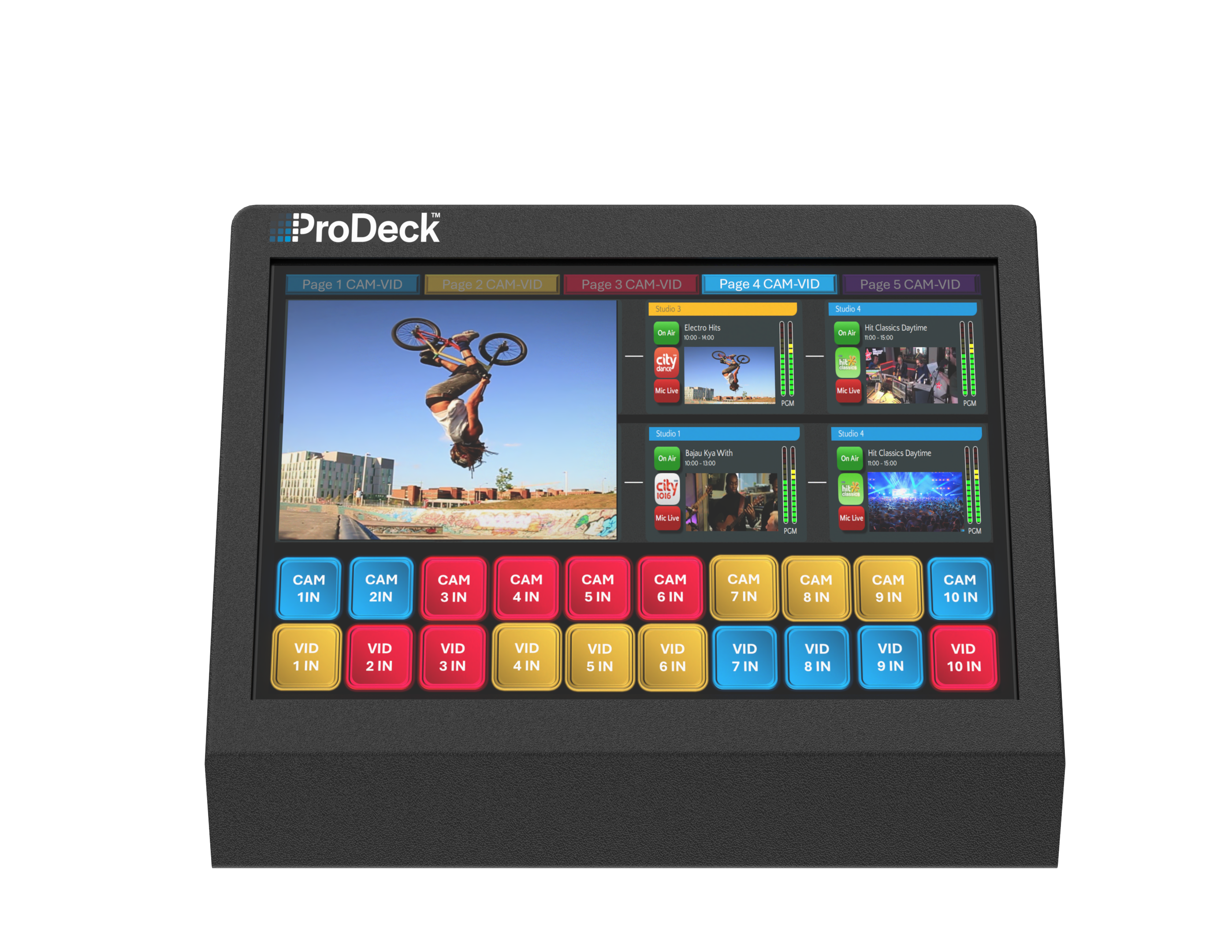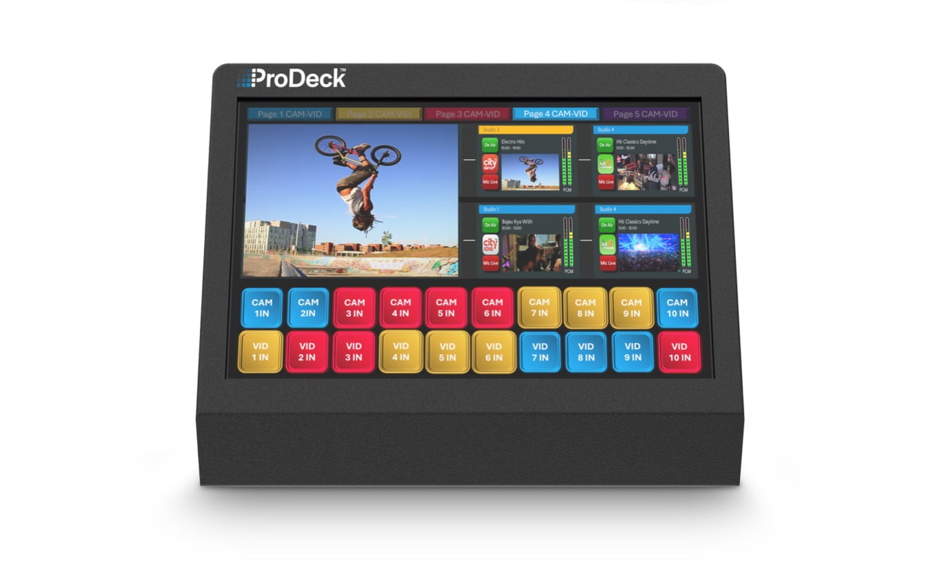 ProDeck は、強力な組み込みコンピュータ テクノロジーと最新のタッチスクリーン インターフェイスを組み合わせ、放送を完全に制御できるようにすることで、創造性を刺激し、素晴らしい結果を生み出します。